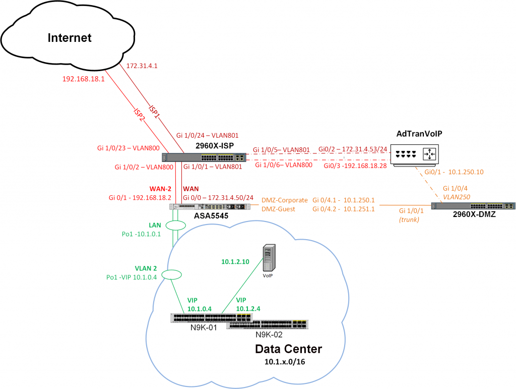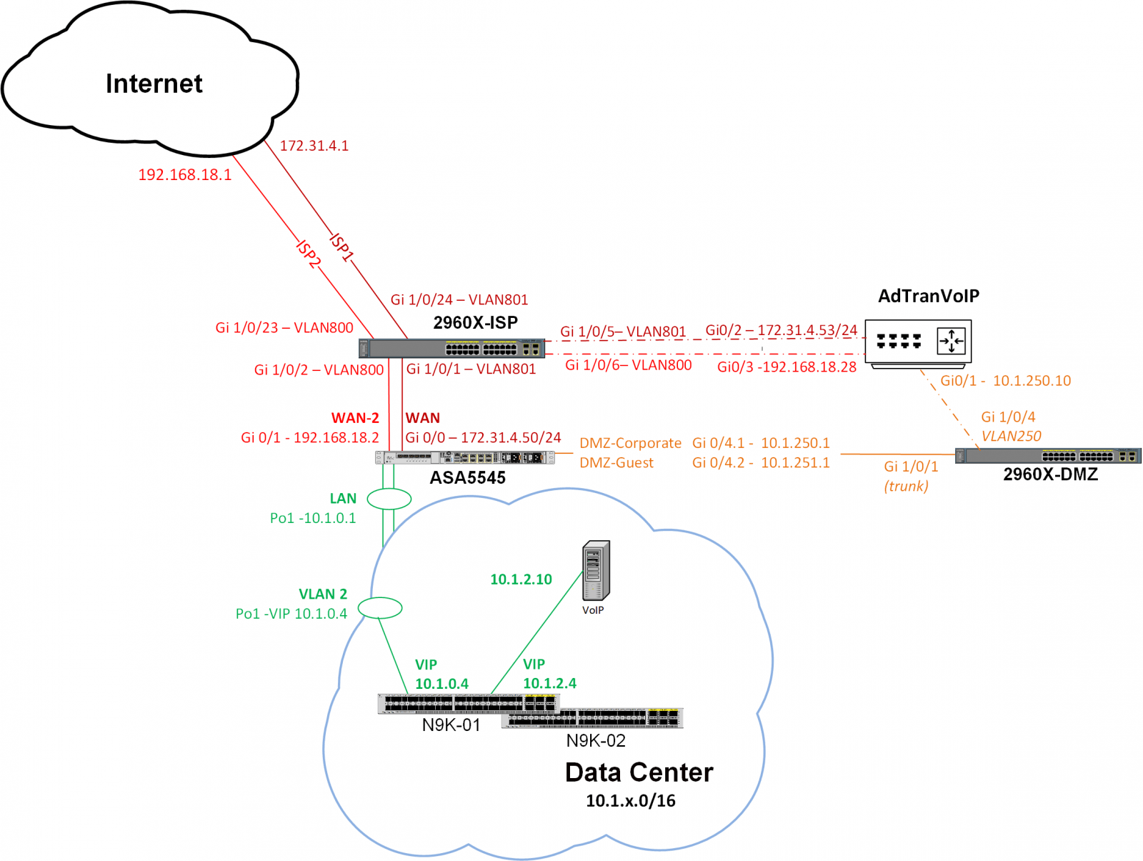 Note: The 2960X-ISP is a Layer 2 switch with no SVIs in VLAN 800 or 801.